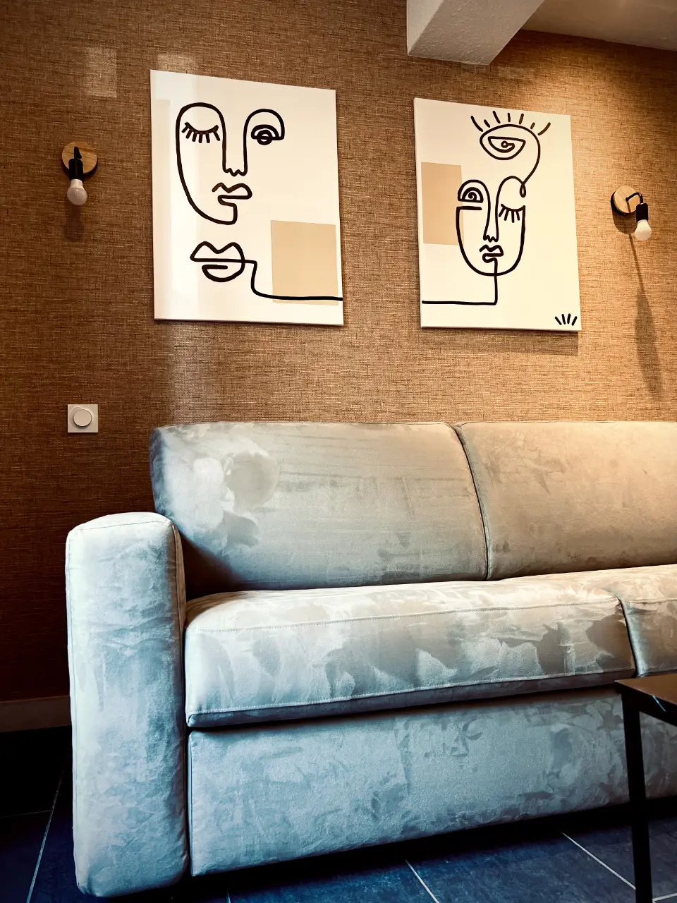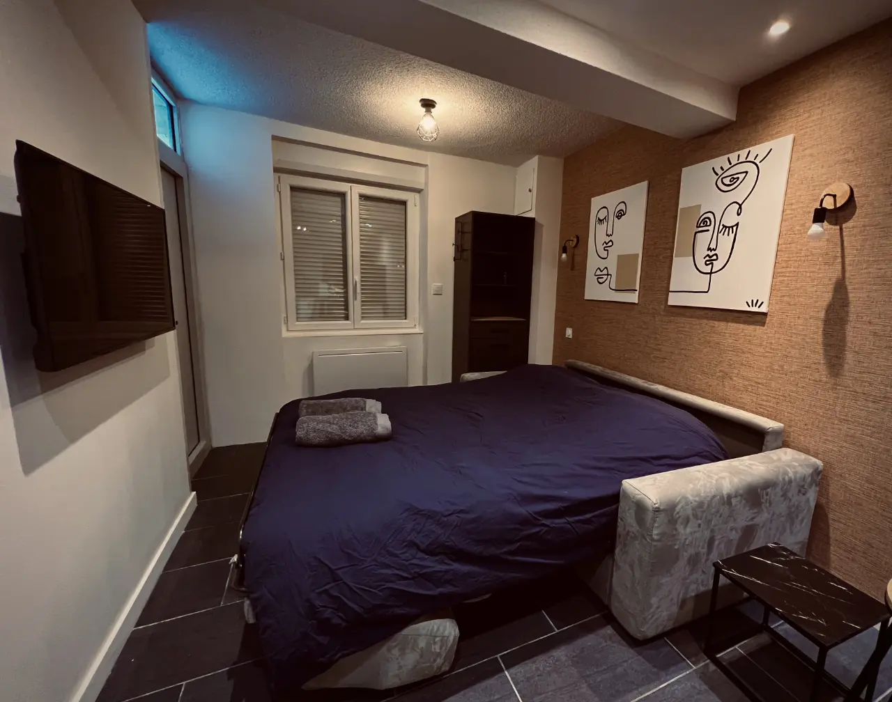 La pièce principale sert à la fois de salon et de chambre. Elle est équipée d'un canapé-lit convertible de 140 avec un matelas de qualité. L'appartement dispose d'un accès WIFI fibre gratuit et d'une télévision grand écran.
